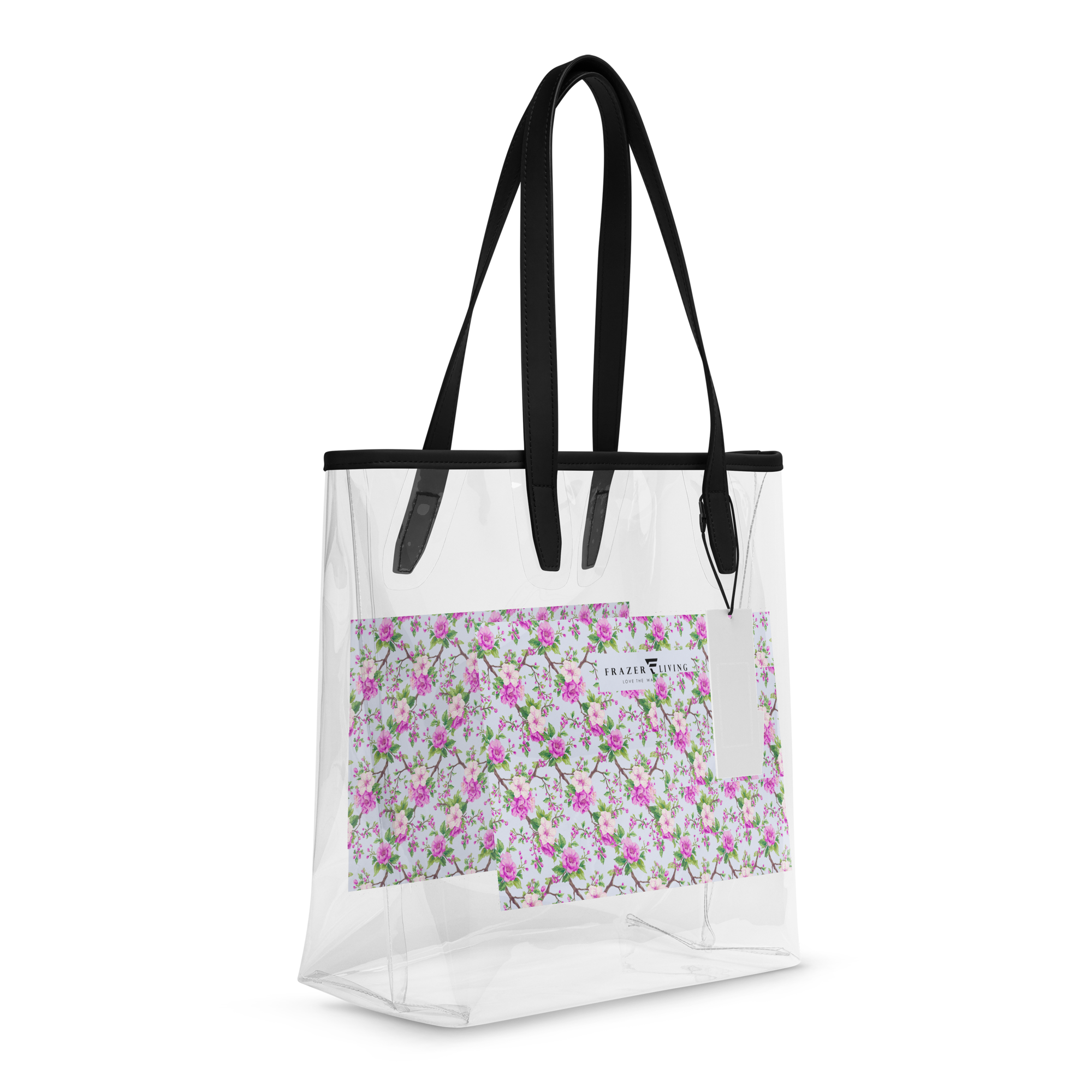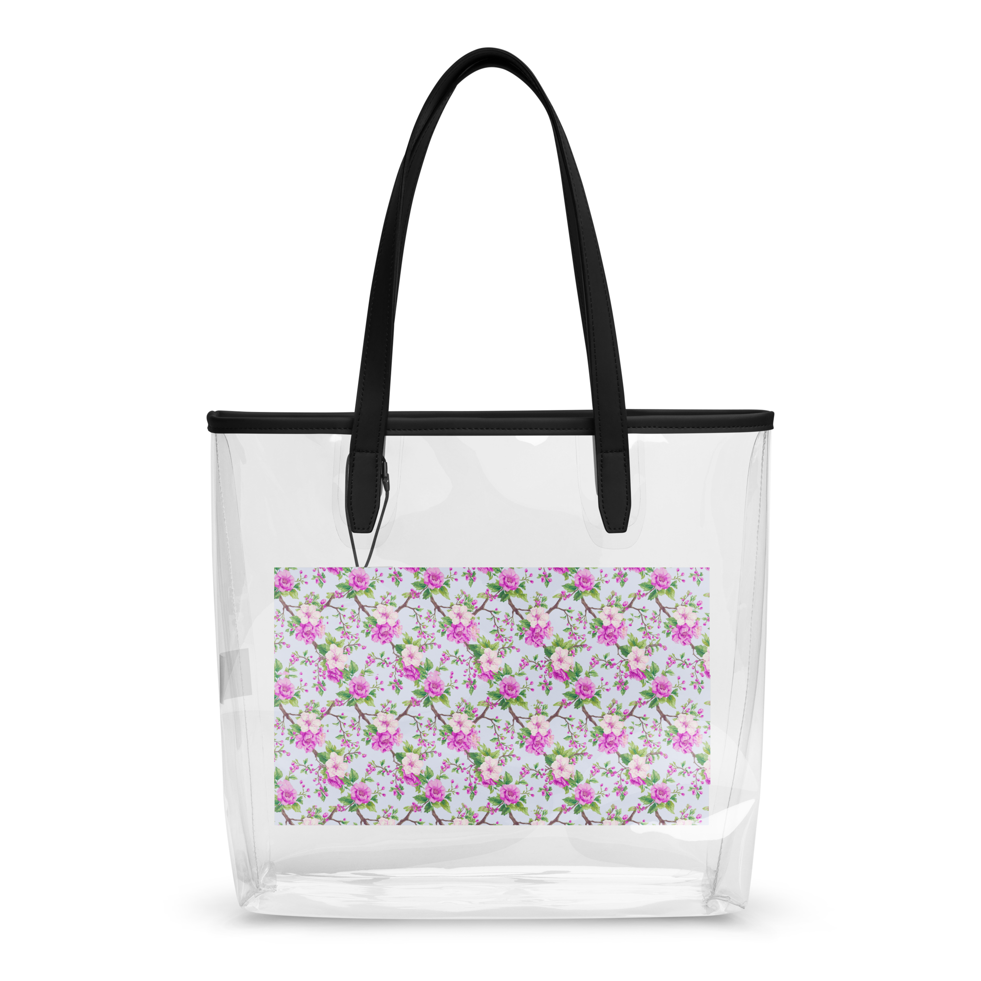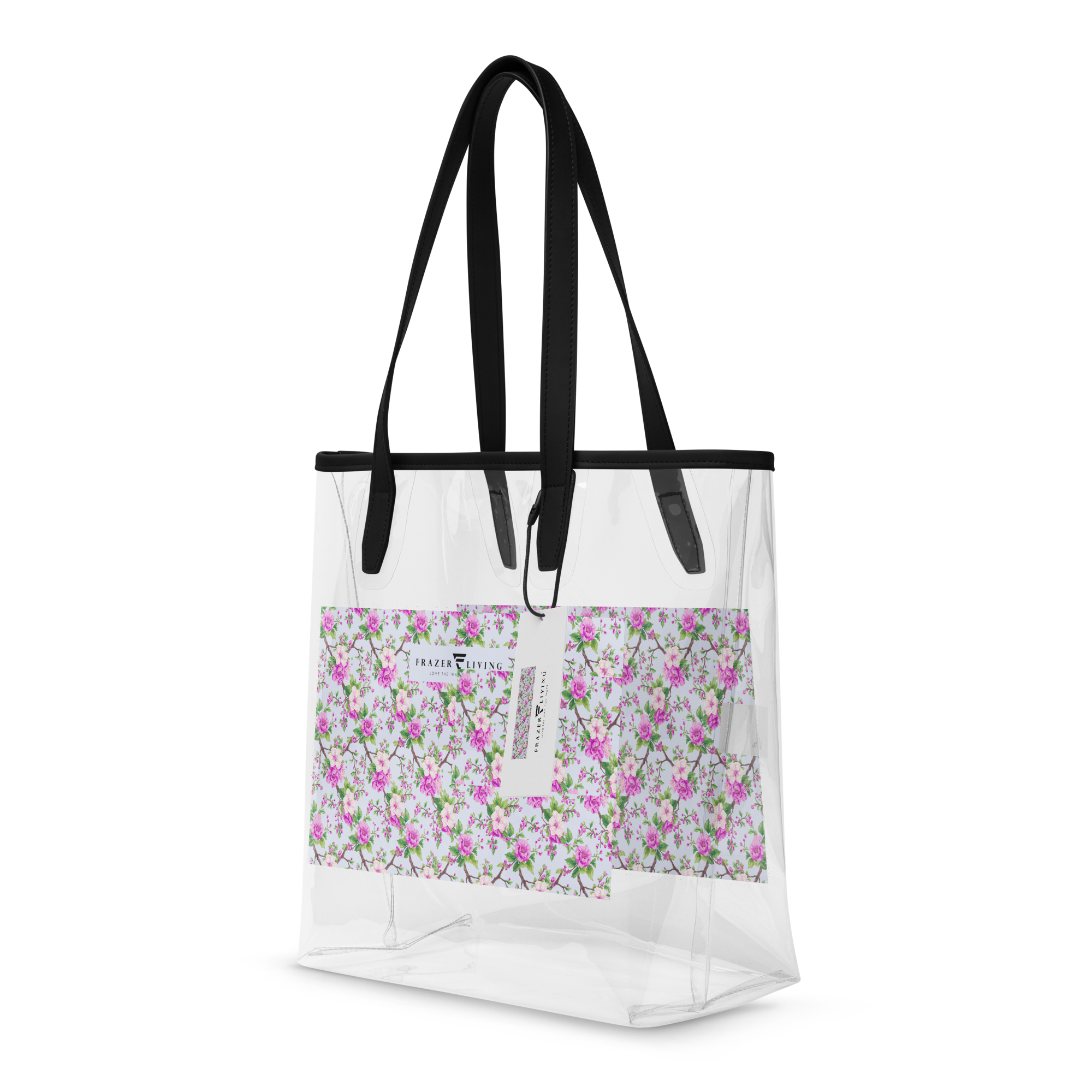 Secret Garden | Clear tote bag | Pink Apple Blossoms and Fuchsia Peony Florals | Premium Luxe | One Size