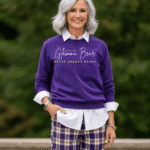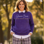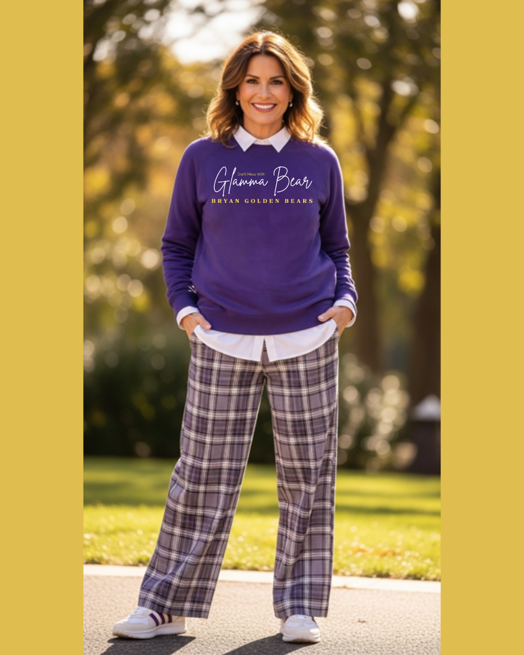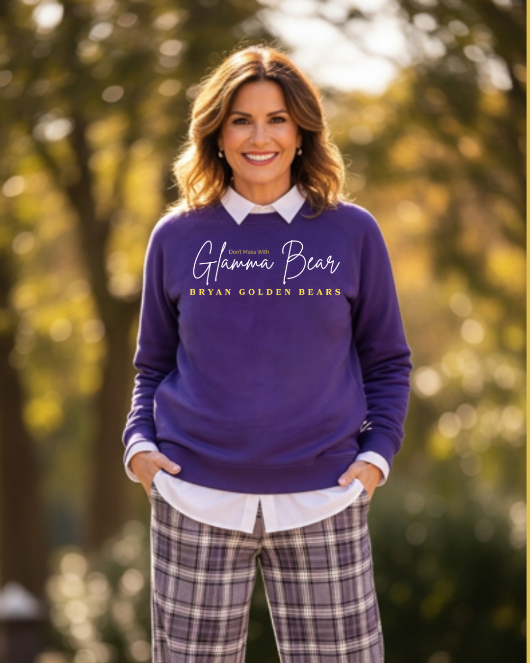 Bryan Bear | Dont Mess with GLAMMA BEAR | Cursive Lettering | Crew Neck | Sweatshirt | Soft Fleece Lined | Indigo Purple, Gold | White Icon | Bryan Golden Bears | Premium Luxe | Reg Size 2XS – XL | Plus Sizes 2XL-6XL