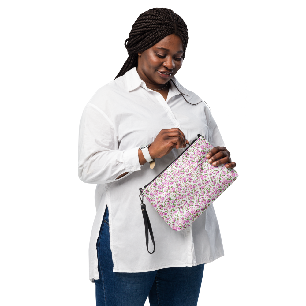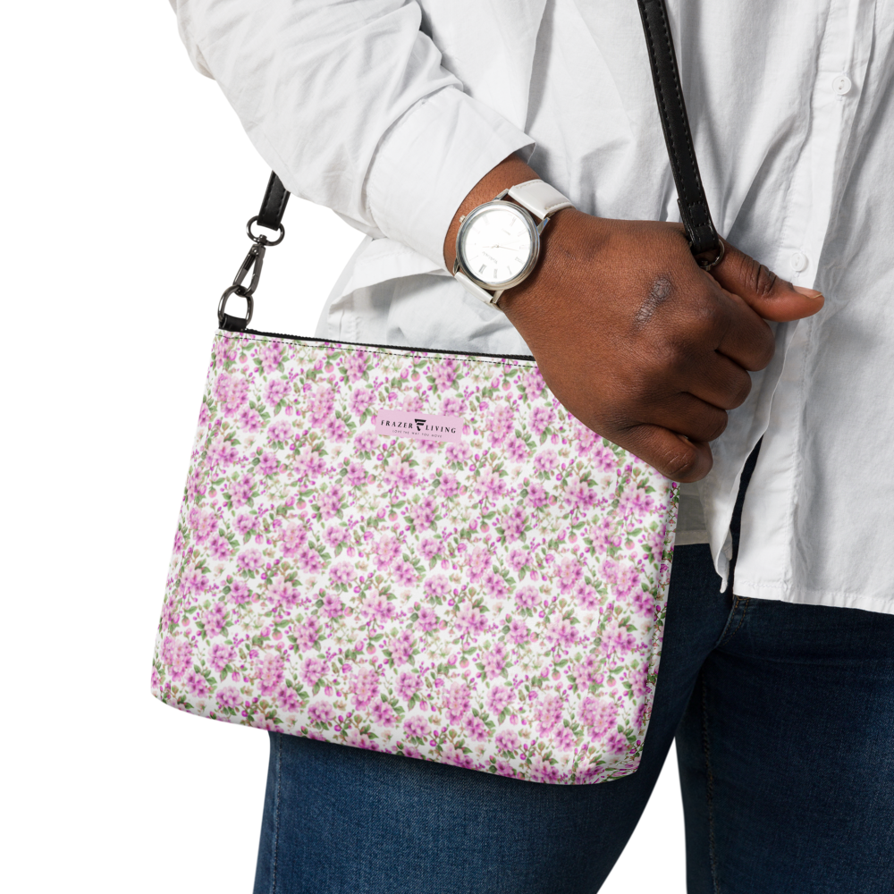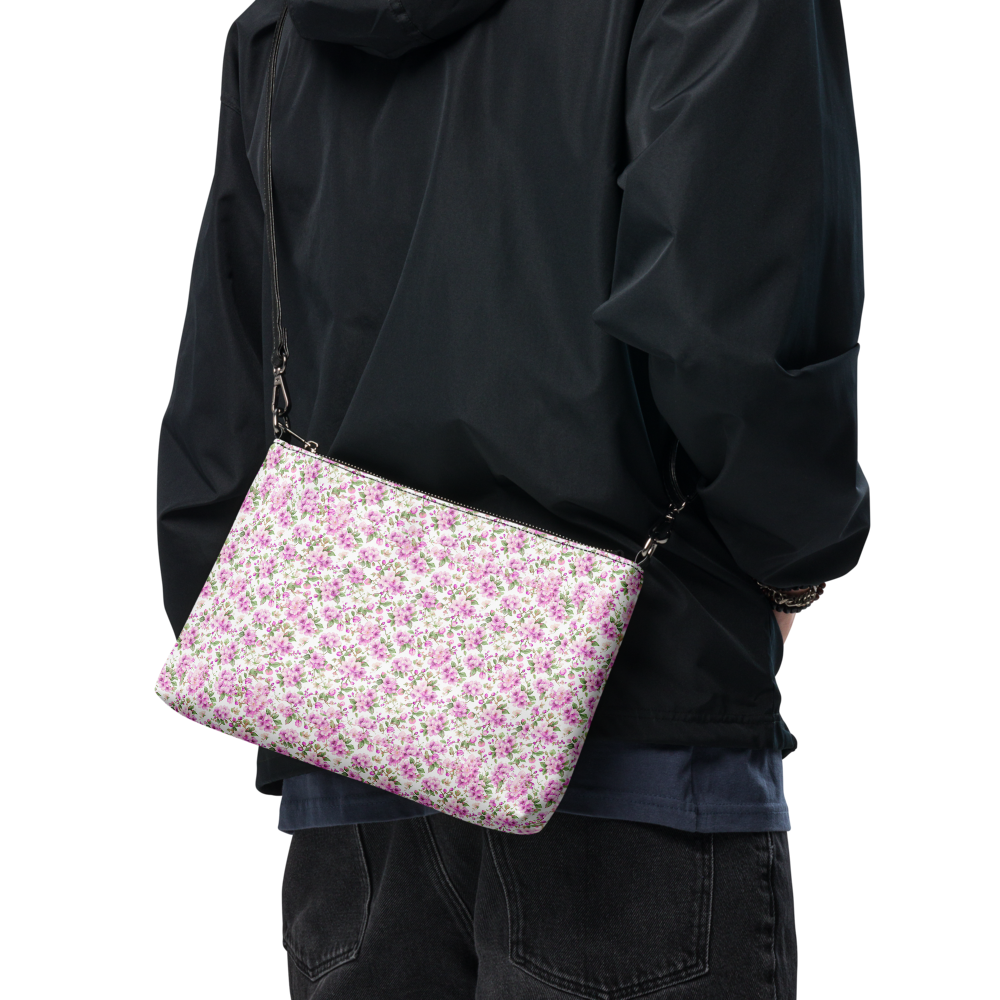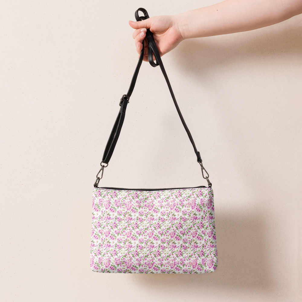 Cottage Bloom | Crossbody Purse | Pastel Pink Micro Florals on White | Dual Handle Clutch Handbag with Pocket | | 11″ X 8″ X 15″ | 10-13 days | Premium Luxe | 10-13 Days