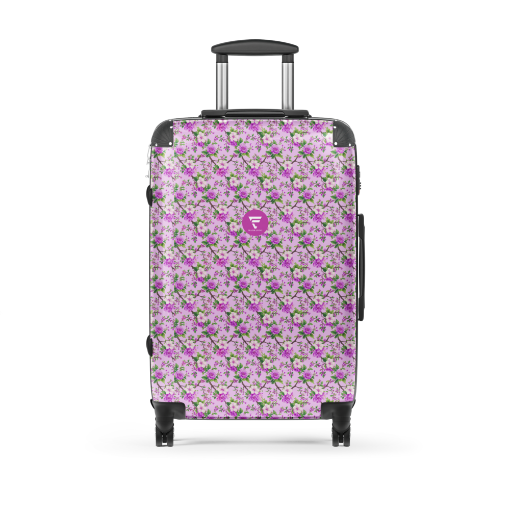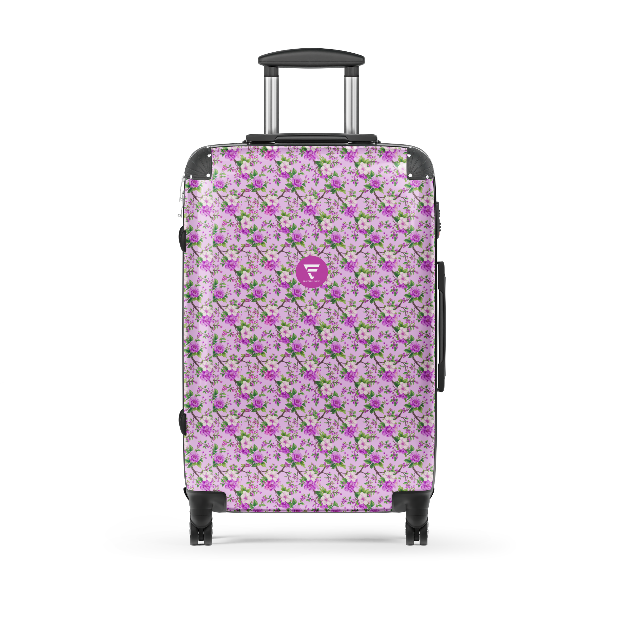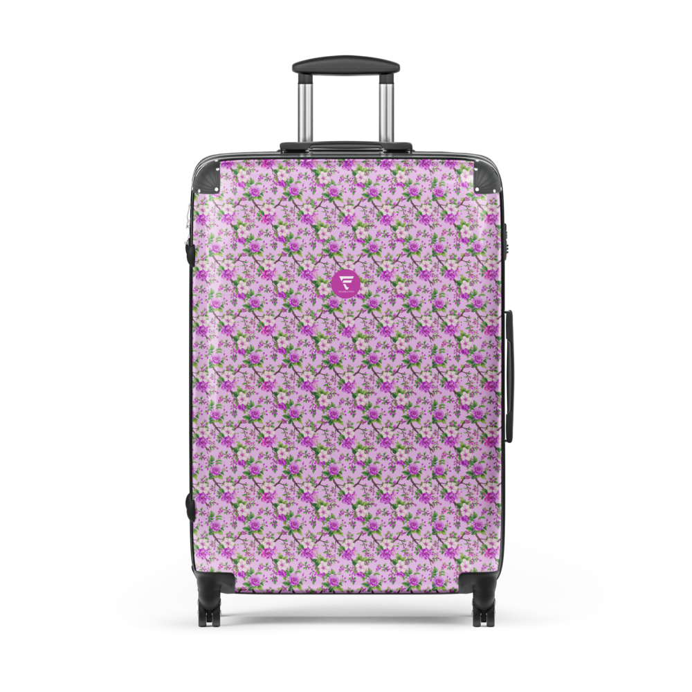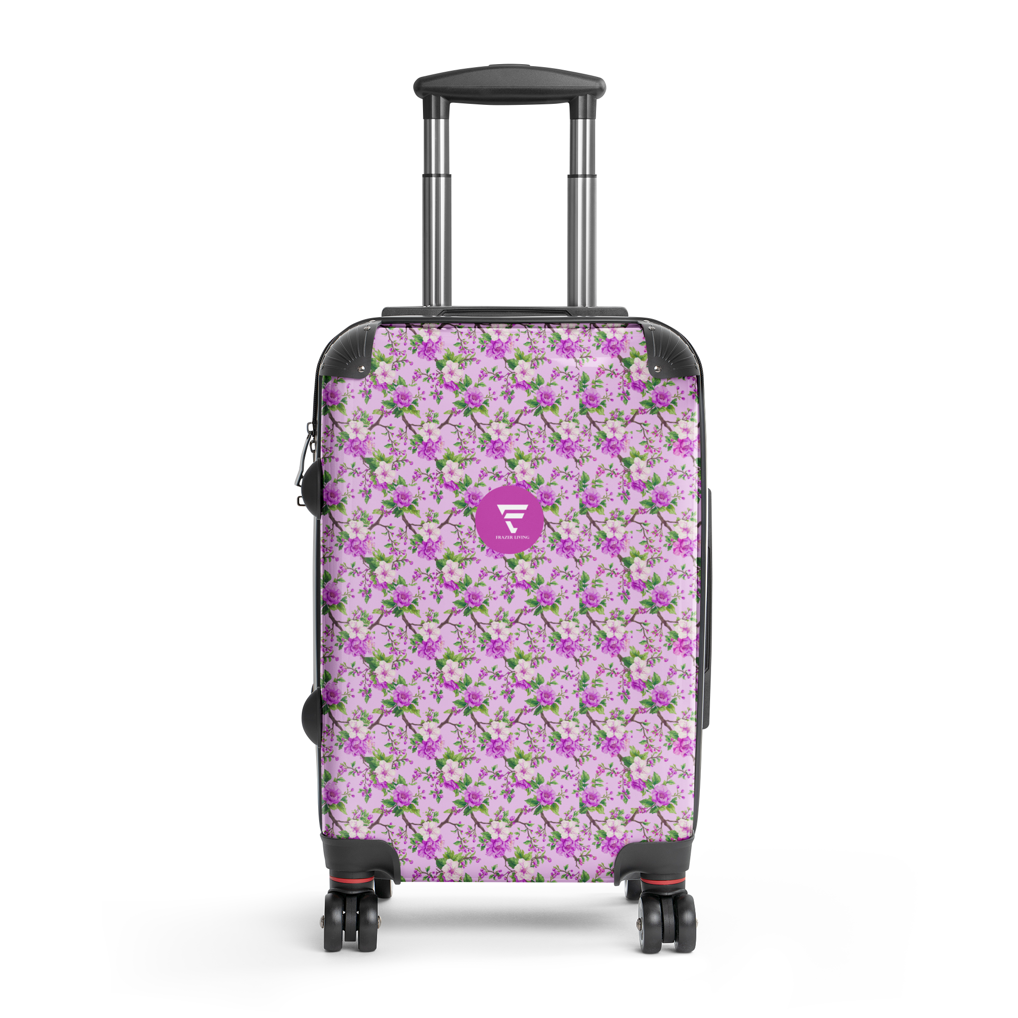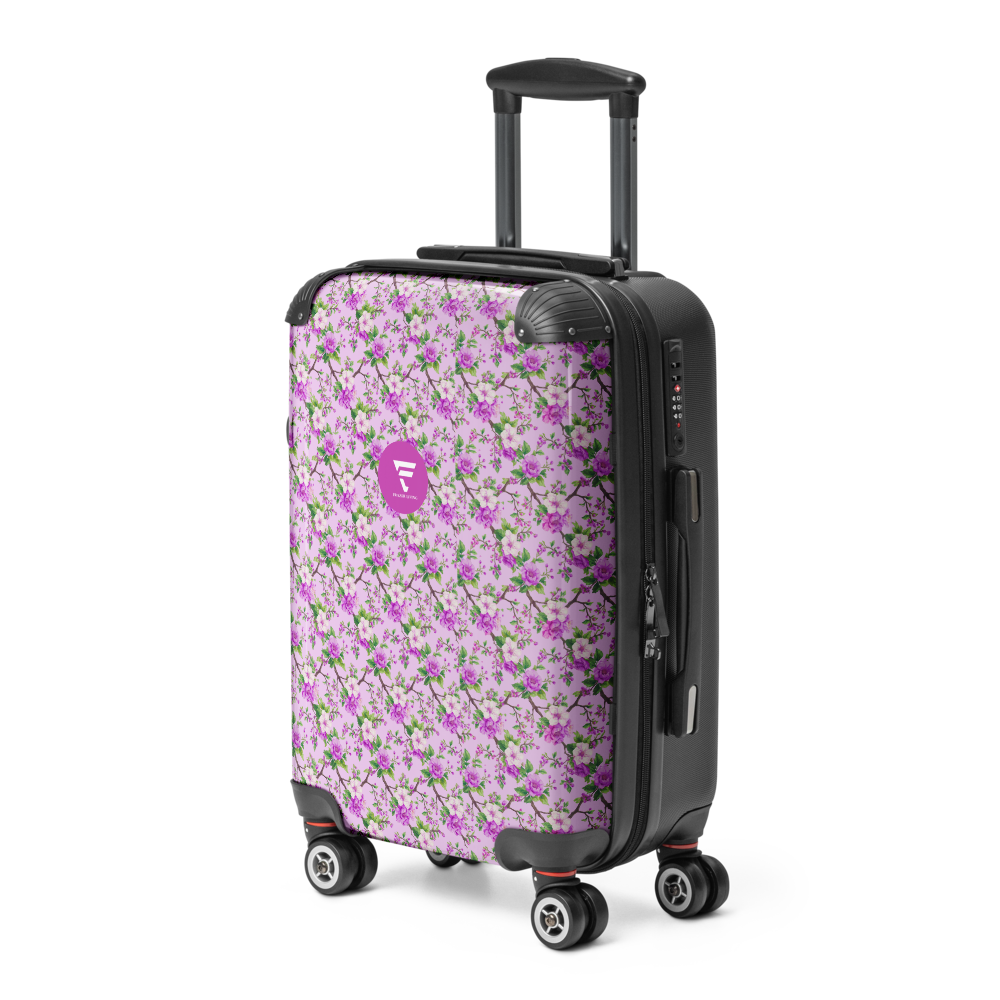 Secret Garden |Hard-shell suitcase | Pink Peonie Florals on Blue Fog | Premium Luxe