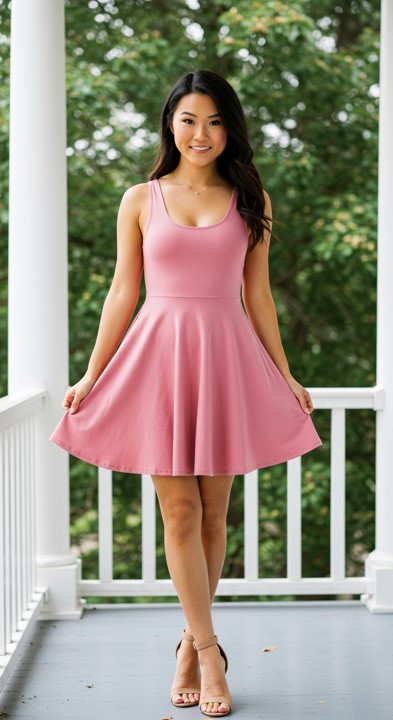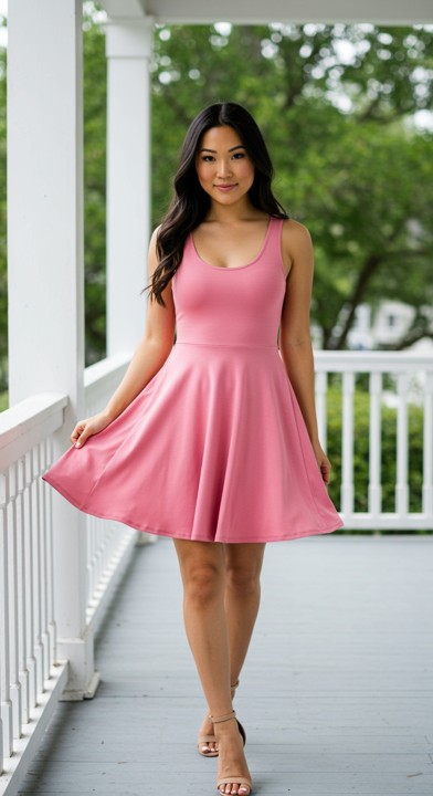 Offers tummy forgiveness if needed as the waist is cut a little higher at the smallest part of your waistline with the full skirt providing coverage where needed.