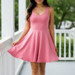 • Mid-thigh length flared skirt