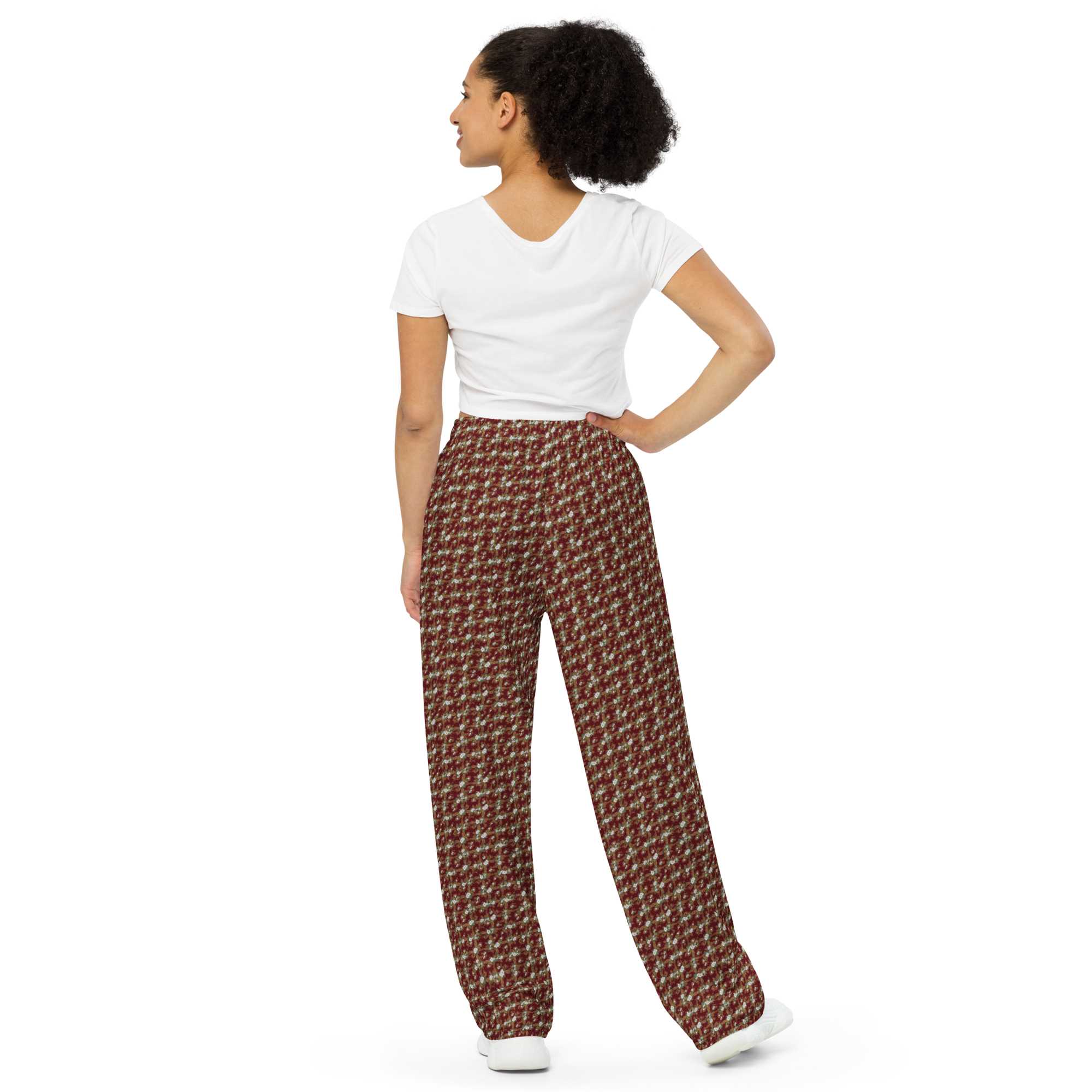 Julia Grace | Wide-leg Pants | Burgundy Maroon | Micro Florals | Premium Luxe | Women’s Sizes 2XS – XL |Plus Size 2XL – 6XL