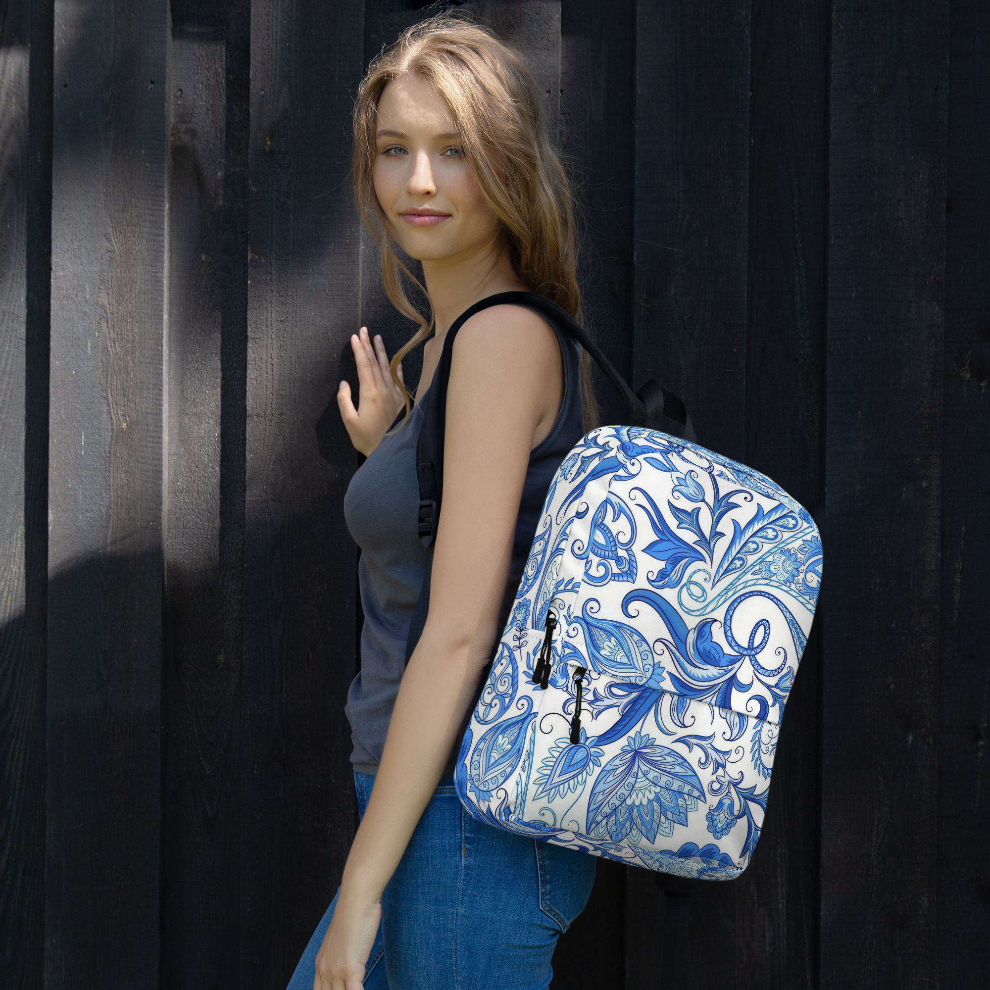 Maisie Indigo Paisley | Backpack with Pocket | Cobalt Blue | Premium Luxe