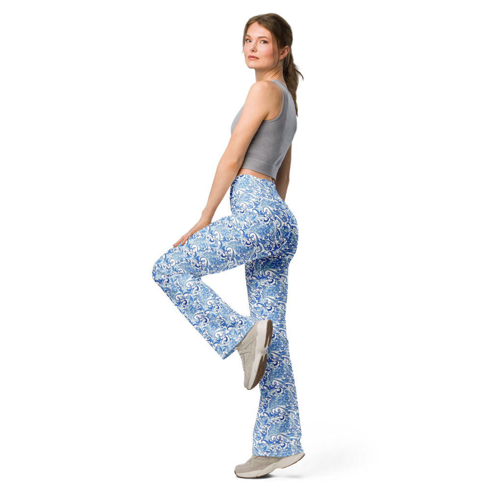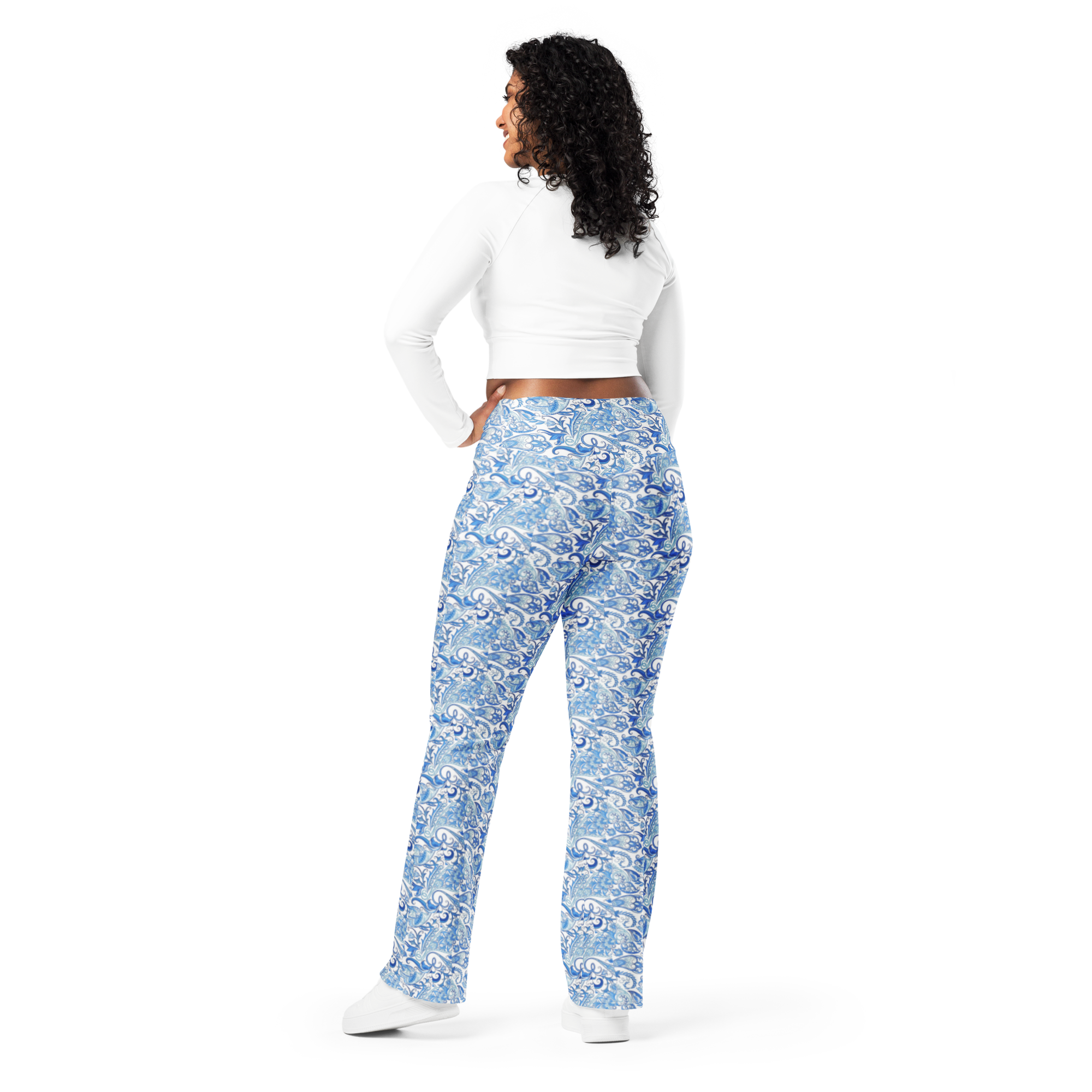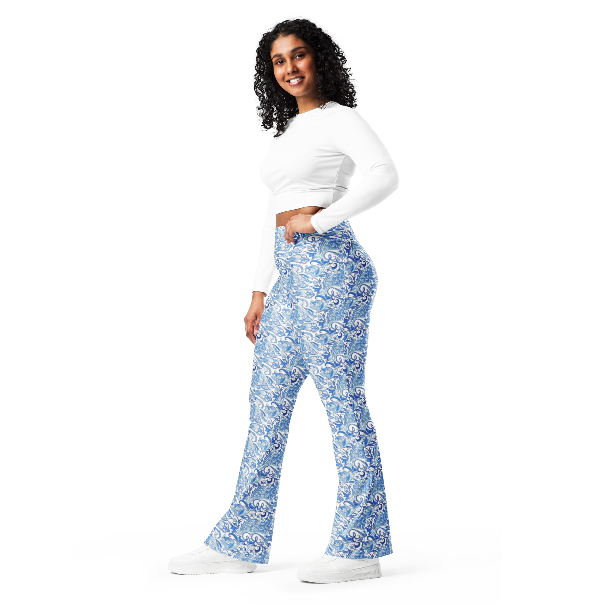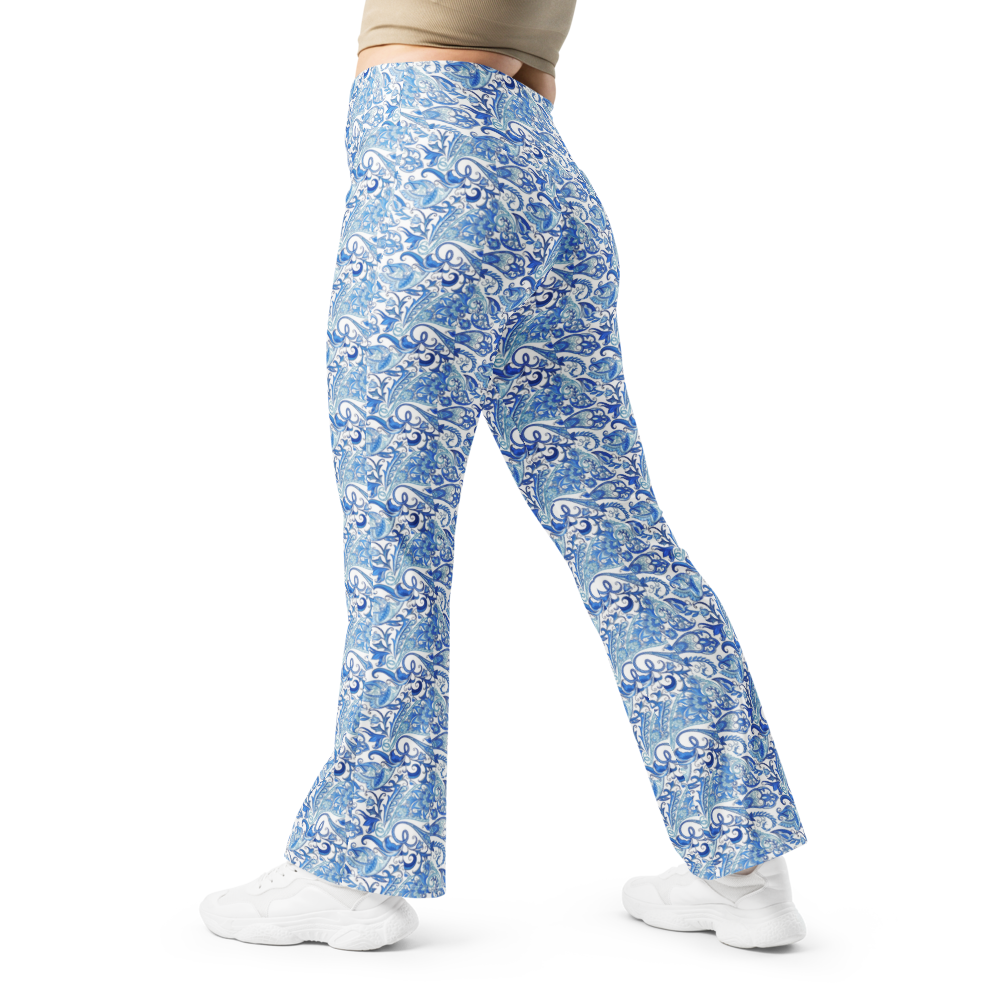Maisie Indigo Paisley | Flared Leggings Pants | Cobalt Blue | Sizes 2XS-XL | Size 2XL-6XL | Premium Luxe