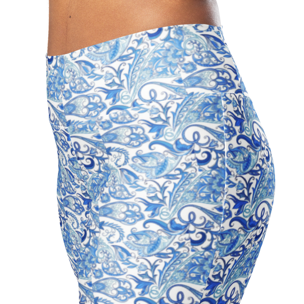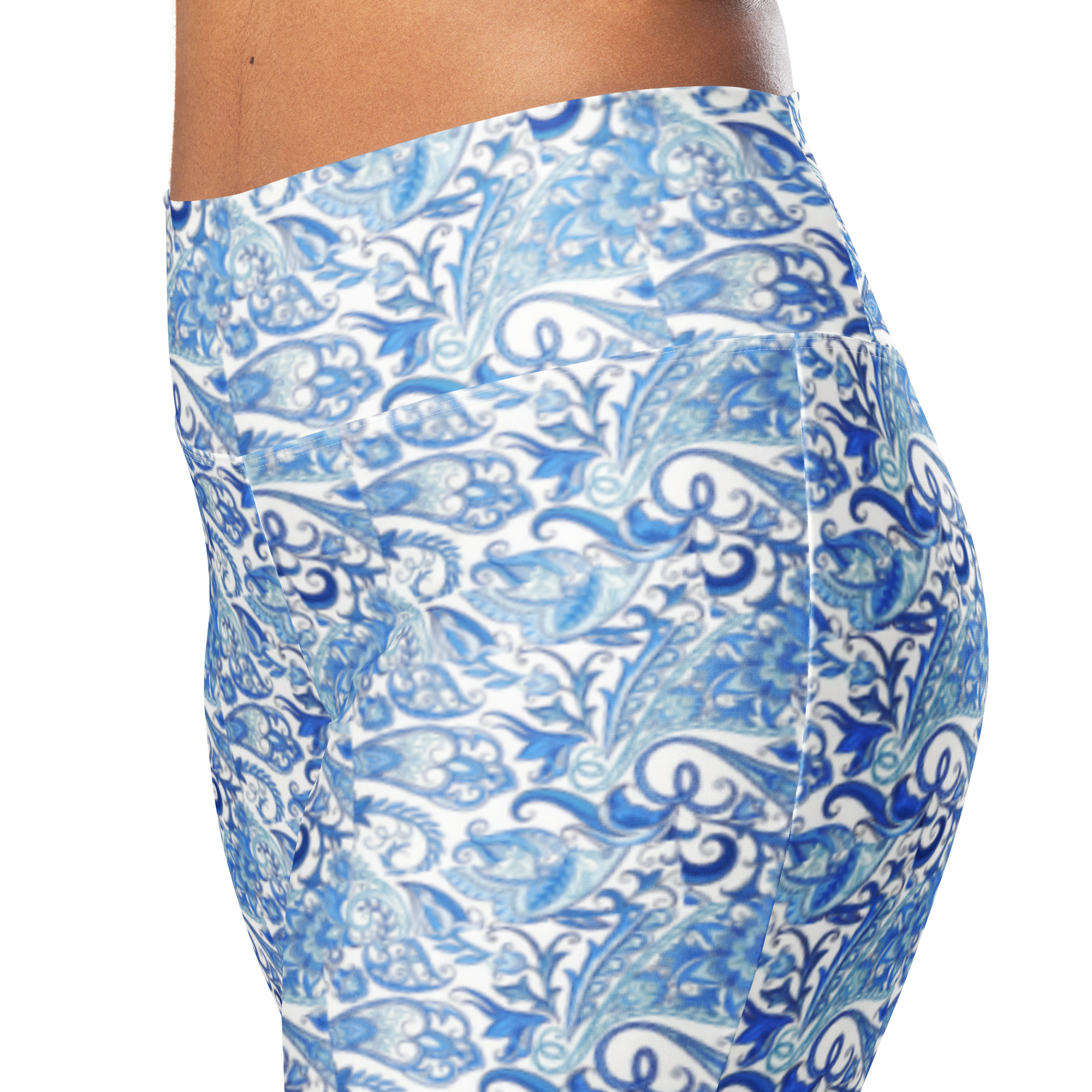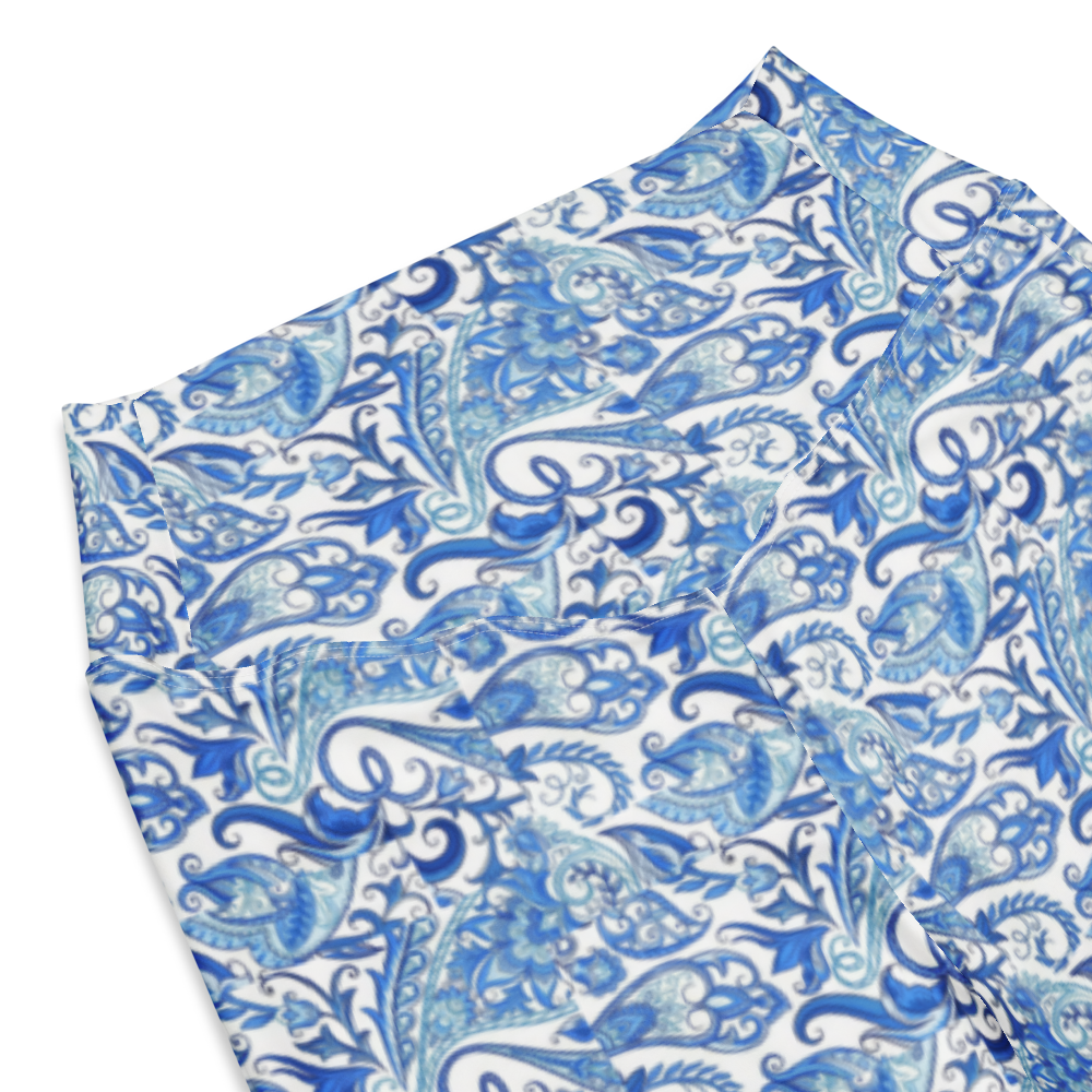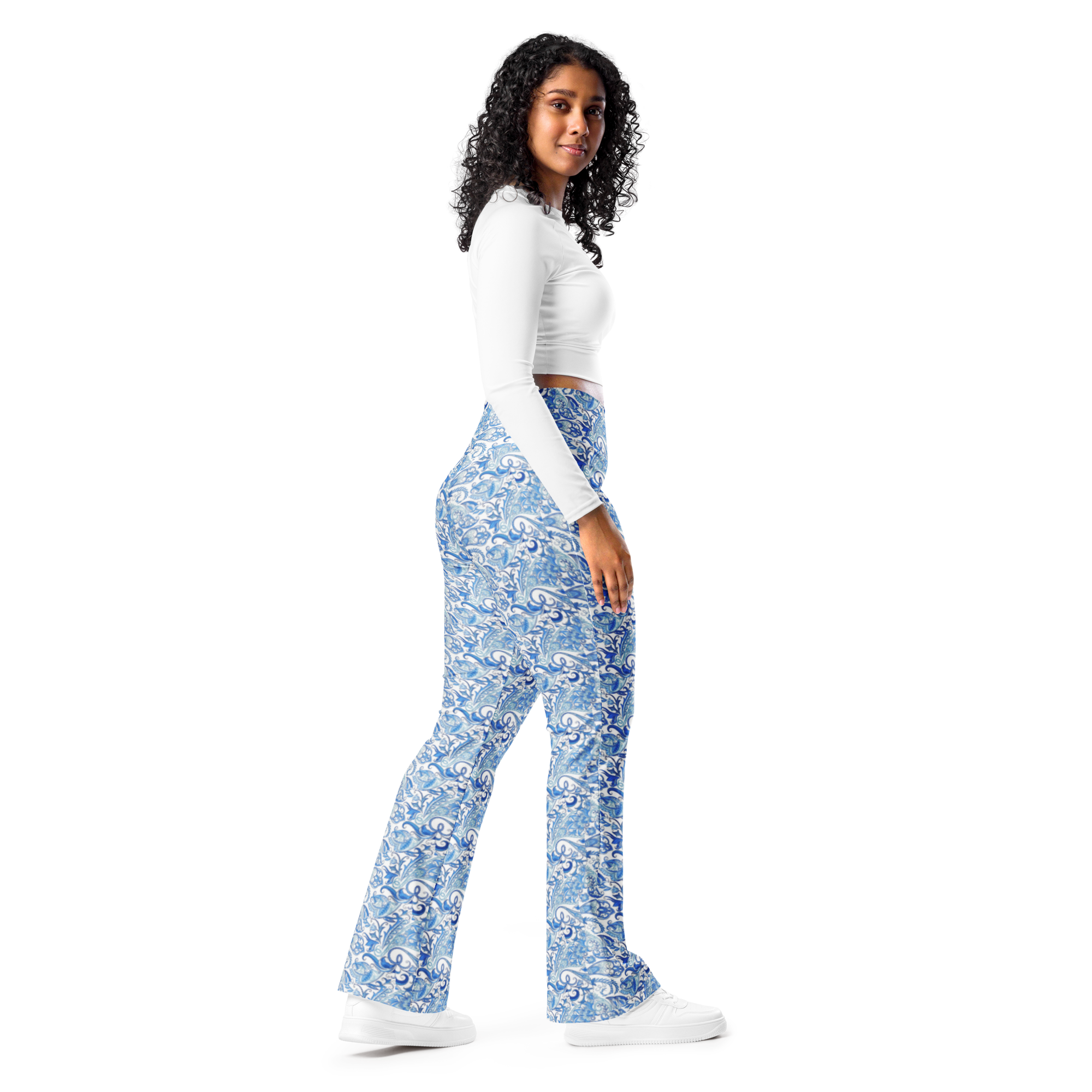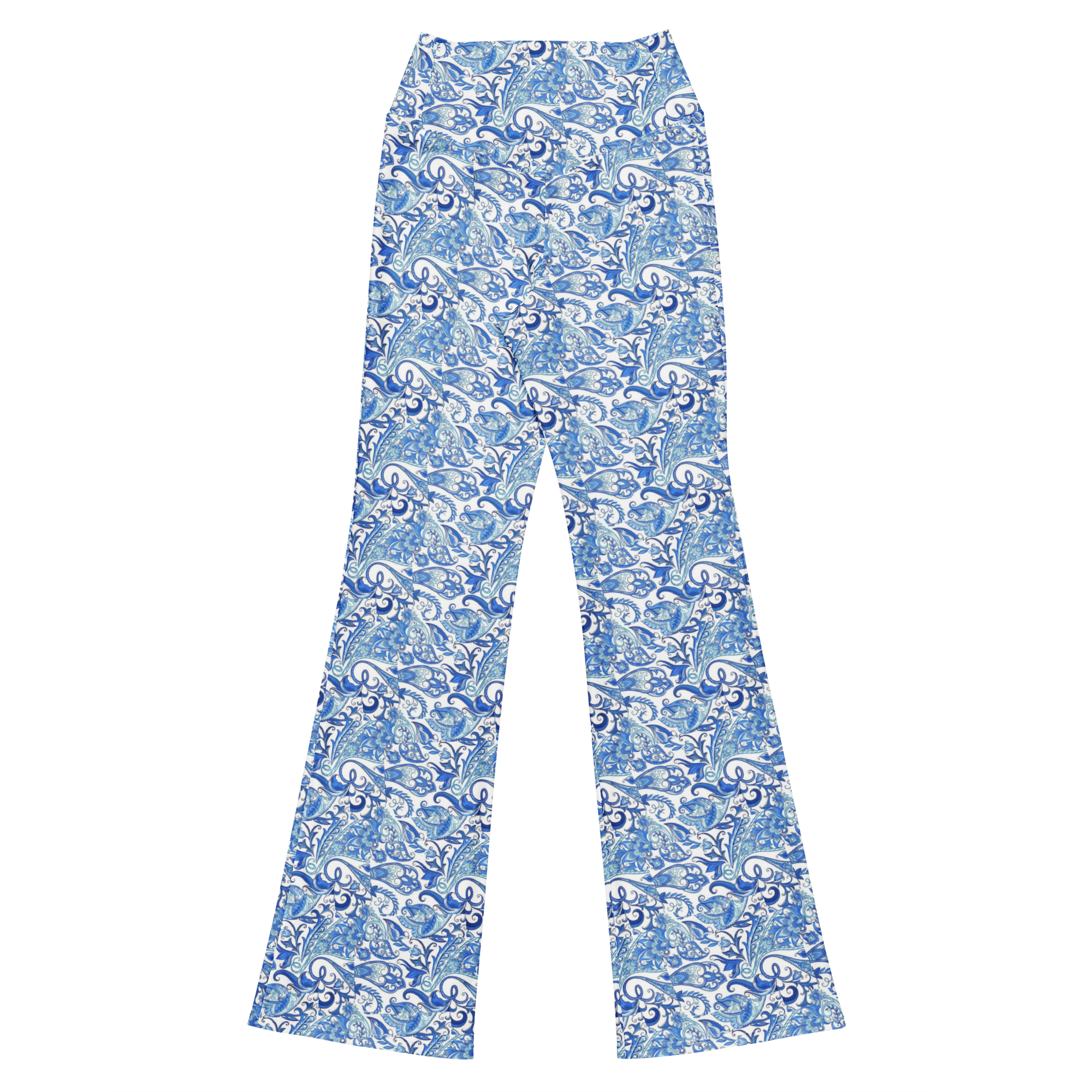 Maisie Indigo Paisley | Flared Leggings Pants | Cobalt Blue | Sizes 2XS-XL | Size 2XL-6XL | Premium Luxe
