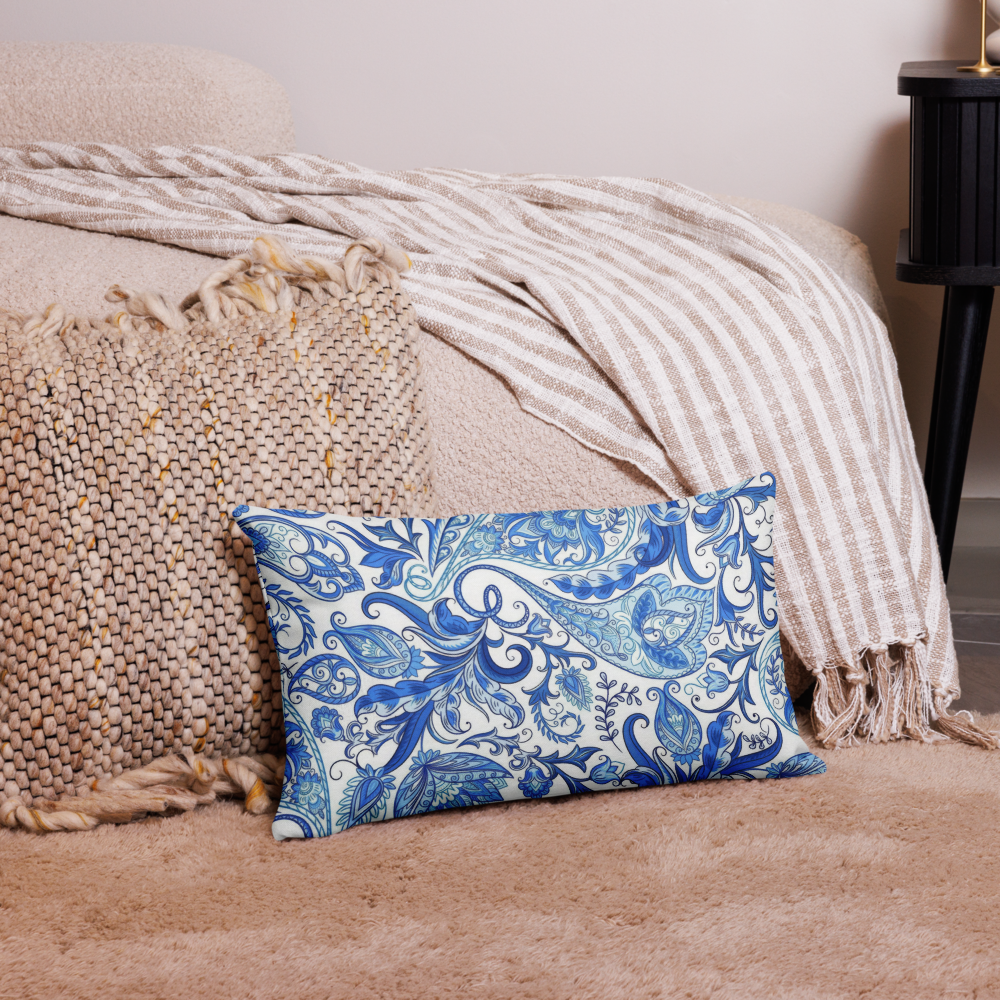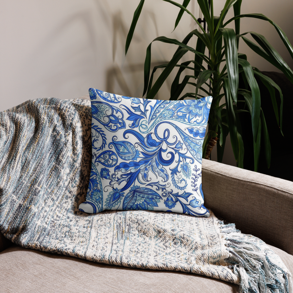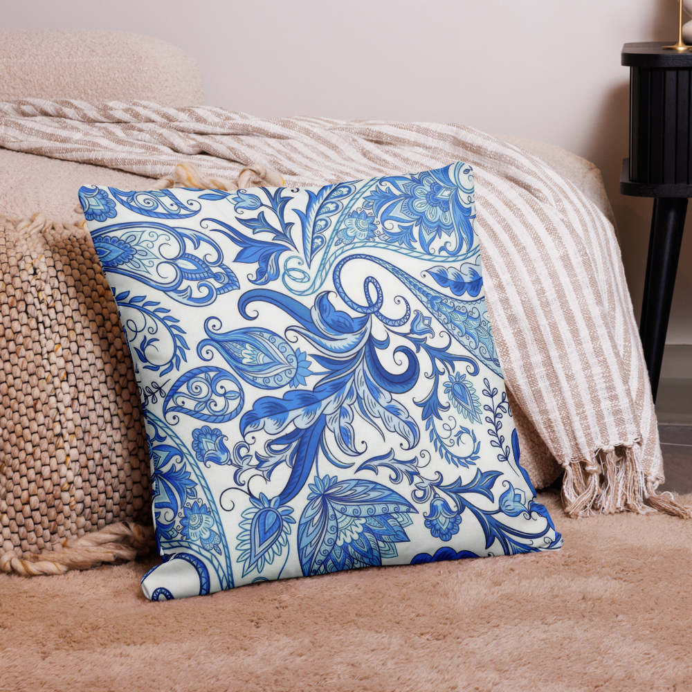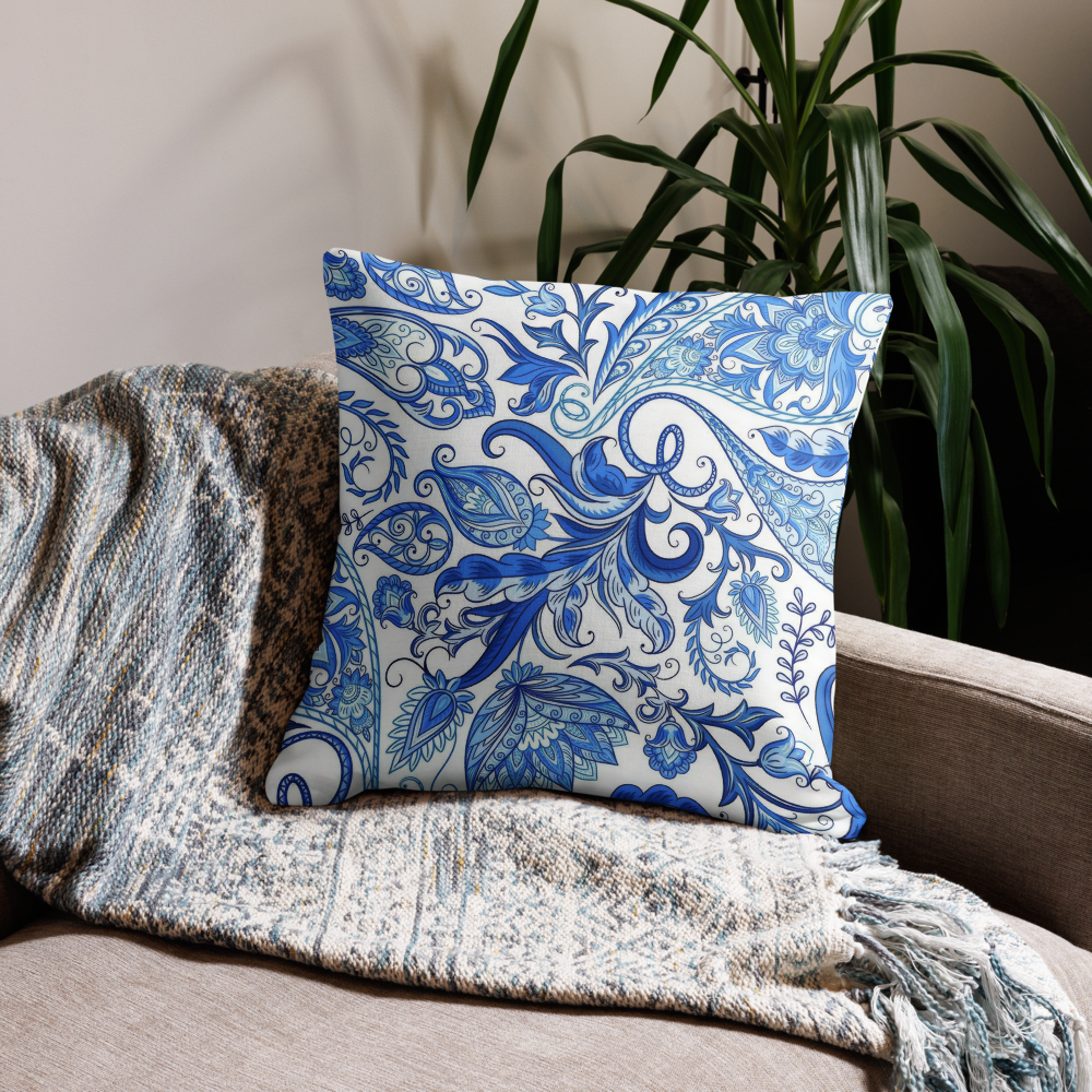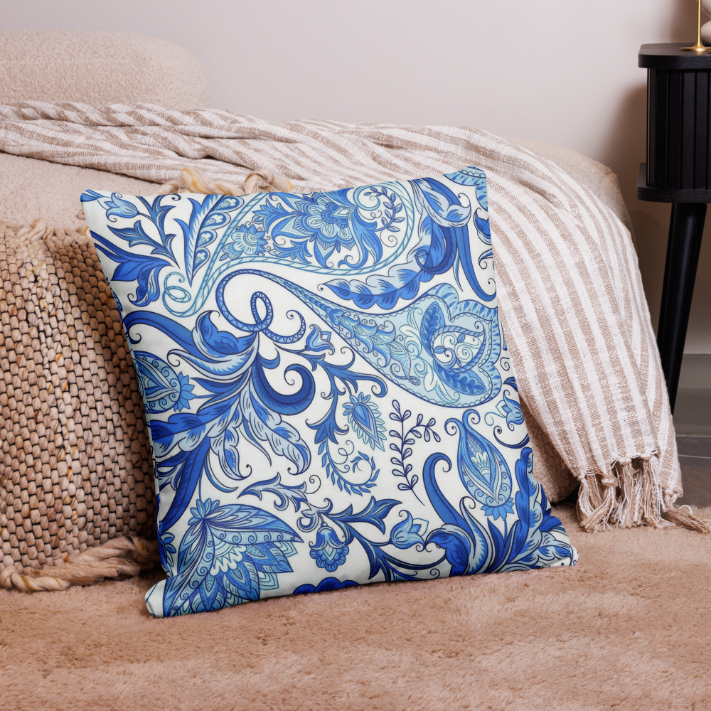 Maisie Indigo Paisley | Smooth Throw Pillow Case Cover with Zipper | Cobalt Blue on White Paisley | 7-9 days | 3 Sizes | Premium Luxe