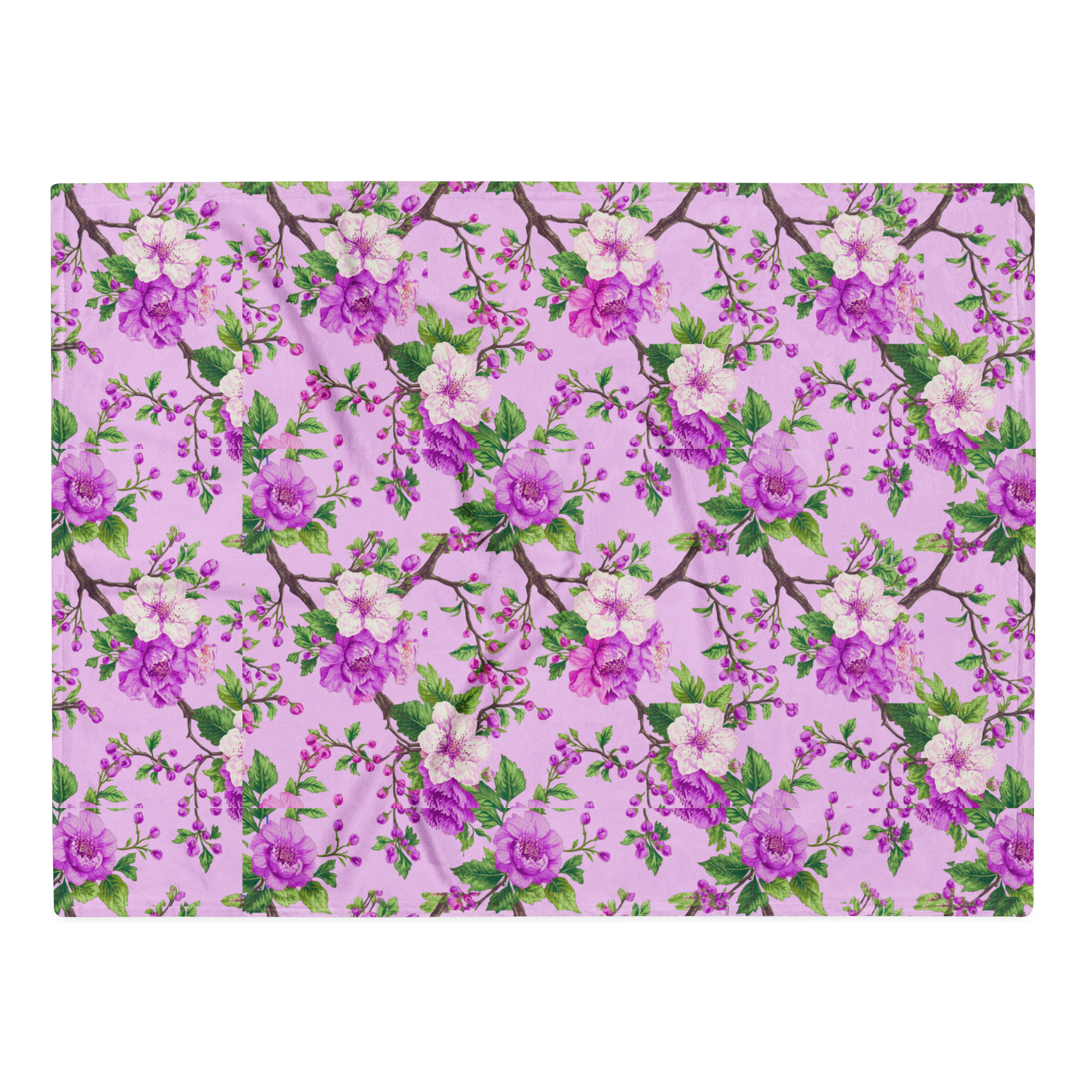 Pink Peoney and Apple Blossom | Throw Blanket | Premium Luxe