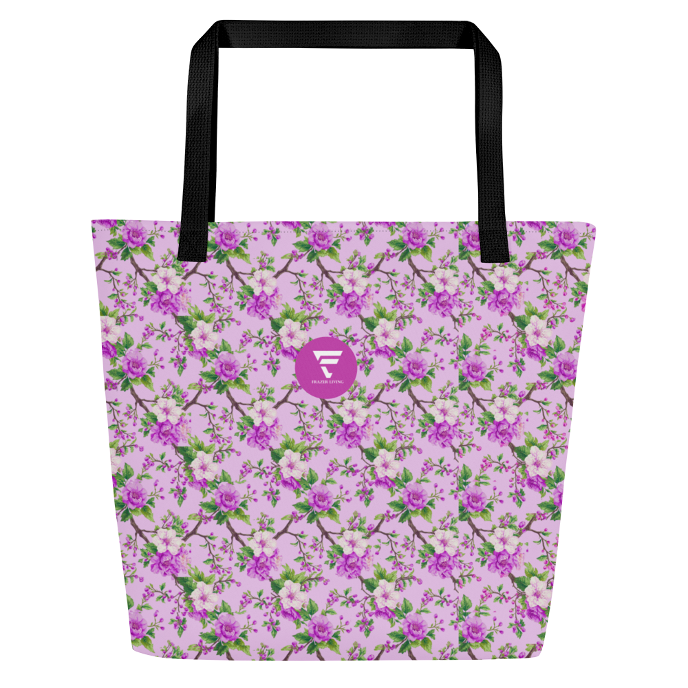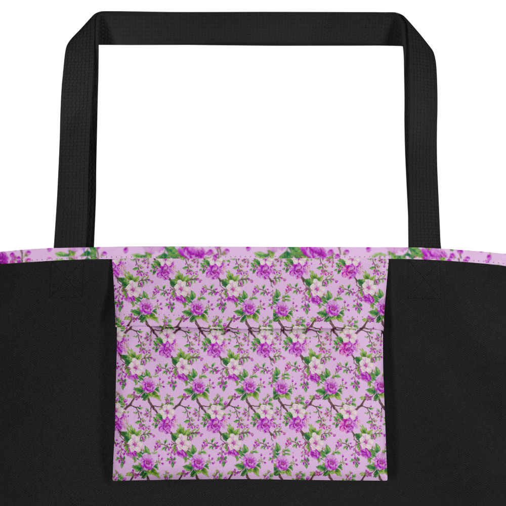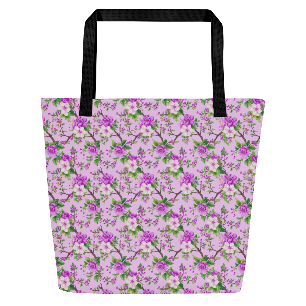 Pink Peony Apple Blossom on Lavender | Large Tote Bag with Large Pocket | One Size | Premium Luxe