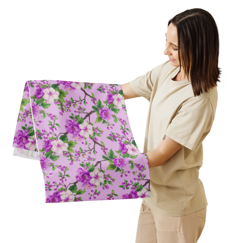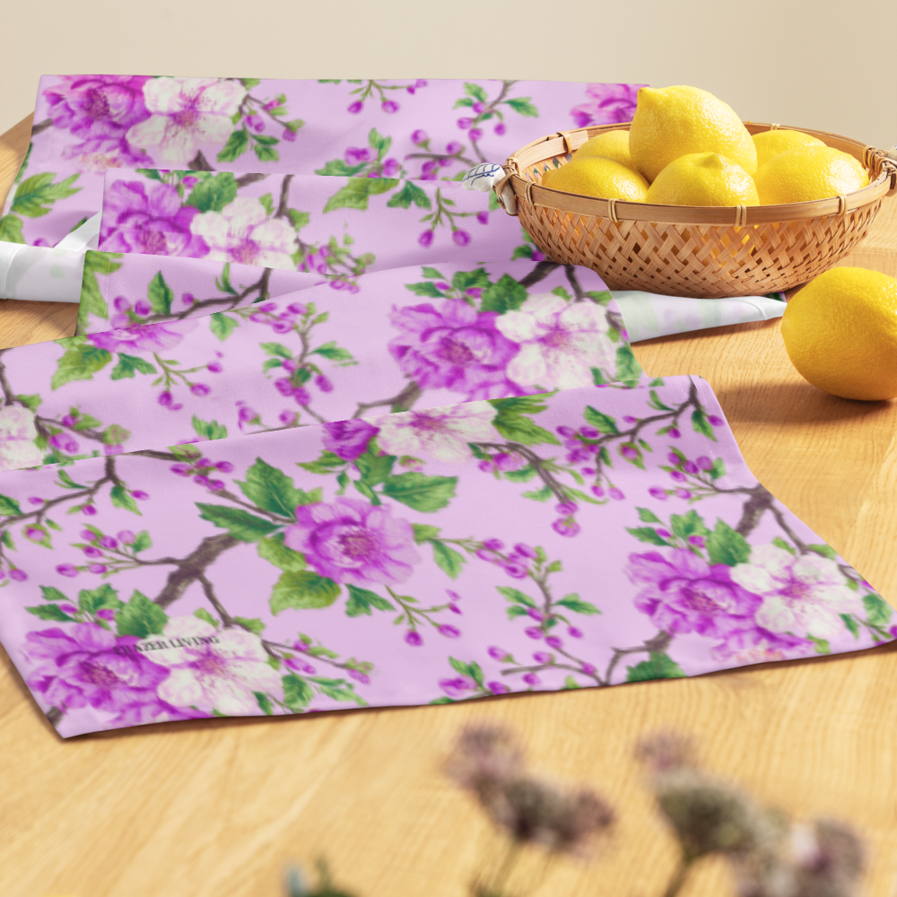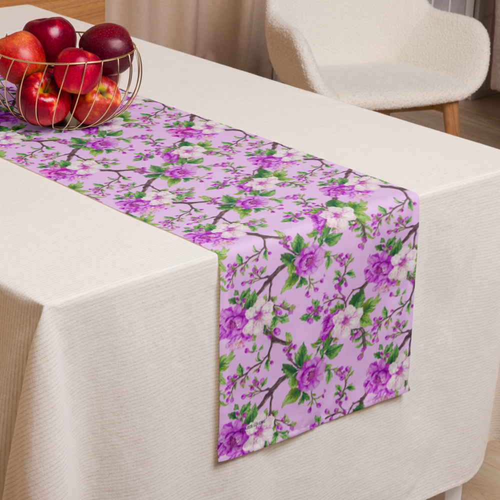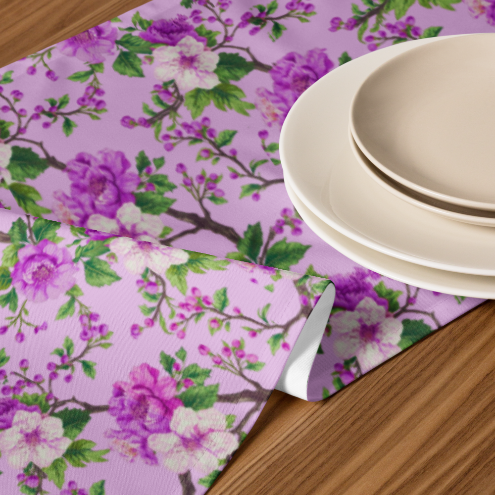 Secret Garden | Table Runner | 90″ x 16″ | Fuchsia Peony Florals on Lilac | Premium Luxe